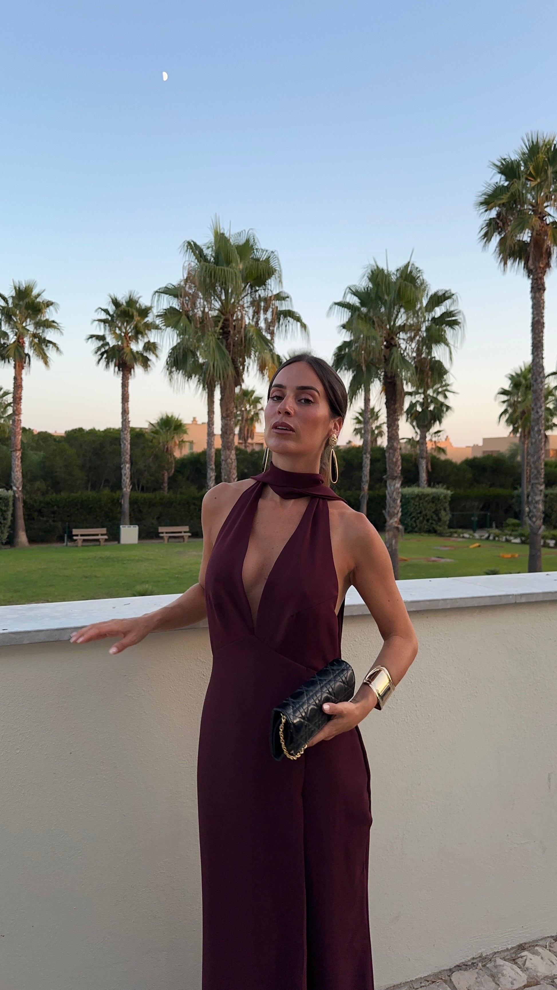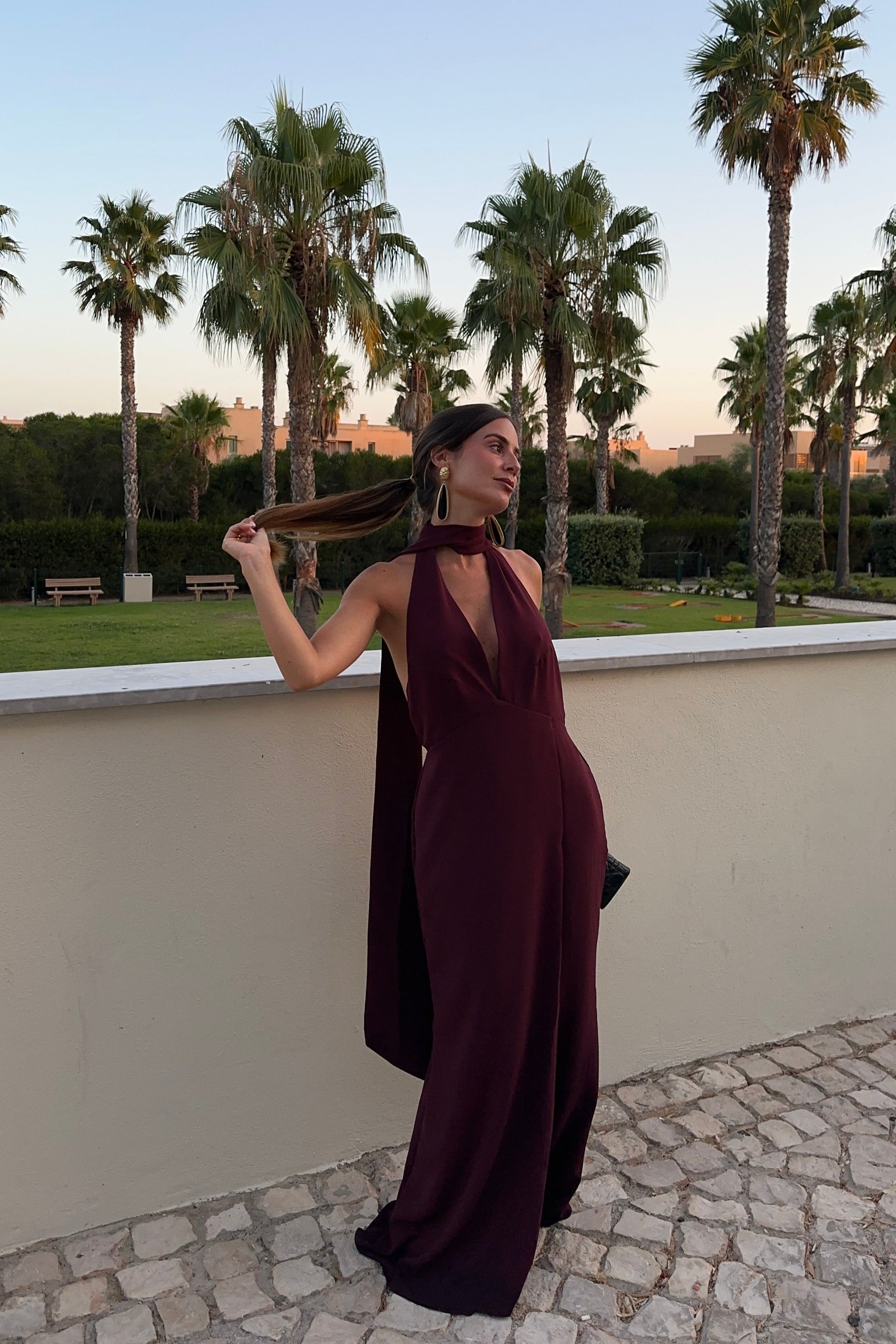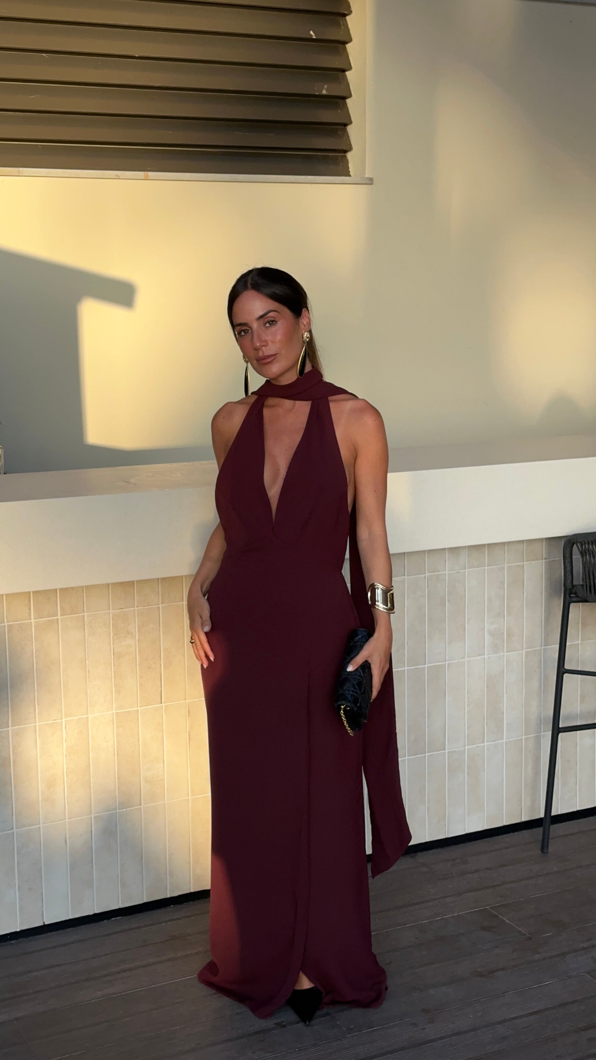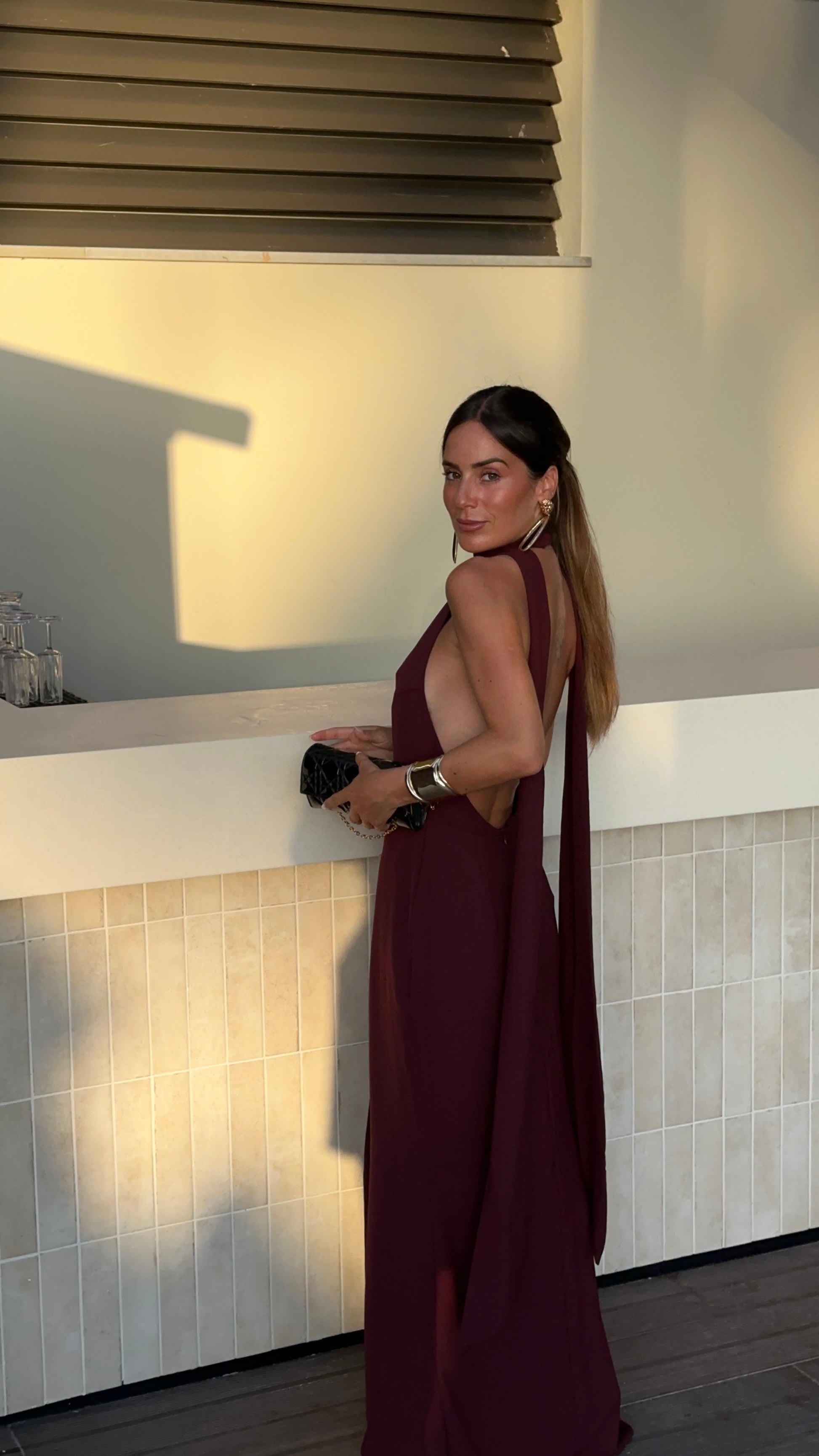 Long dress, at the top with an open back.